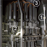 • Interior disinfection of the bottle by a peracetic acid-/hot steam mixture.