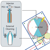 1. Injection of steam and peracetic acid + cleaning of the outer bottle surface